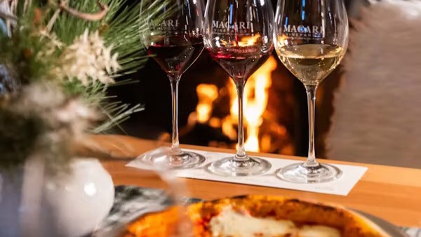 Macari Wine Club: Log in with your Wine Club associated email for an experience discount including a complementary glass or flight paired with a pie of your choice. Book now, select wines and pizza upon arrival.