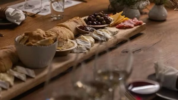 Our wood-beamed subterranean Barrel Cellar offers a unique and intimate setting, perfect for enjoying our wines paired with cheese and charcuterie.