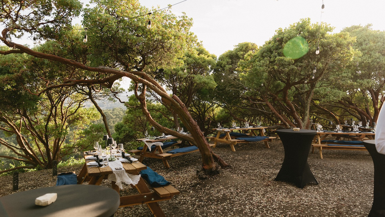 Surrounded by the twisting branches of the manzanitas and the quiet of the ranch after sunset, the setting becomes something entirely its own. Candlelight, open sky, and the rhythm of a shared table create an experience that is both intimate and unforgettable.
